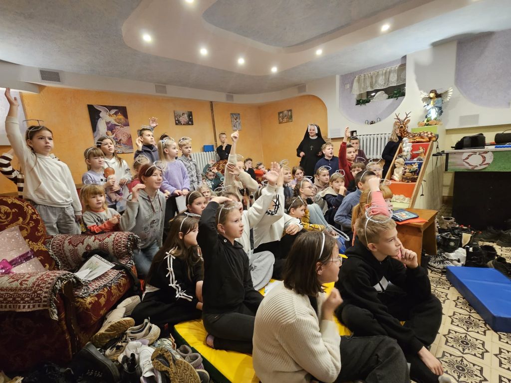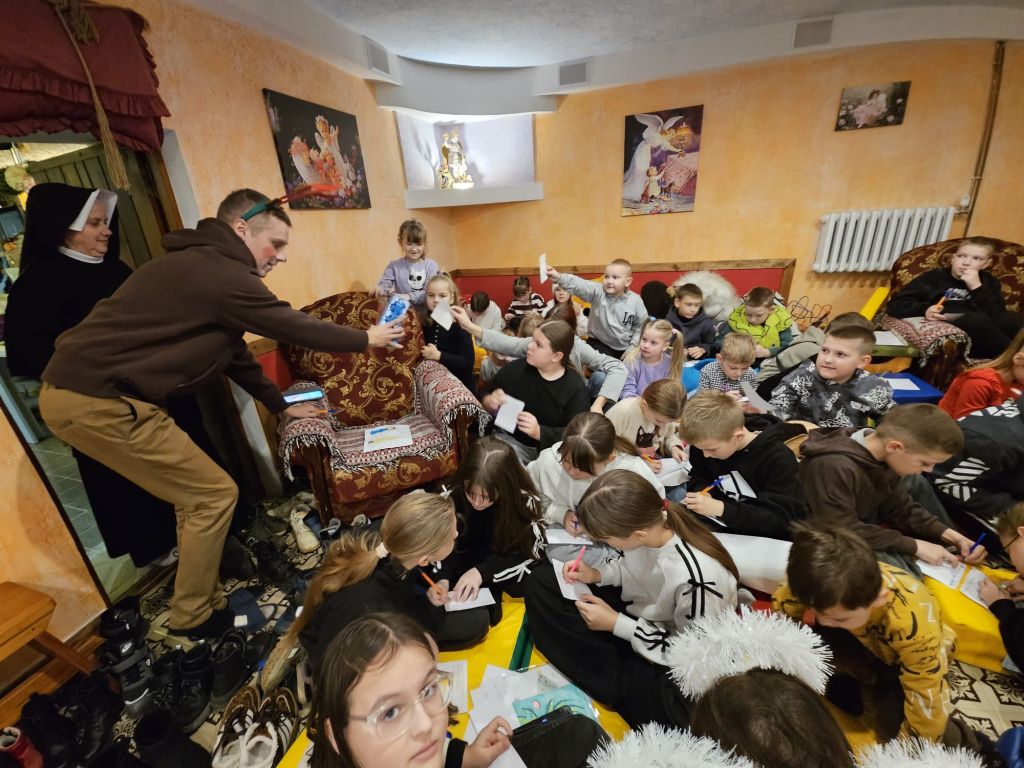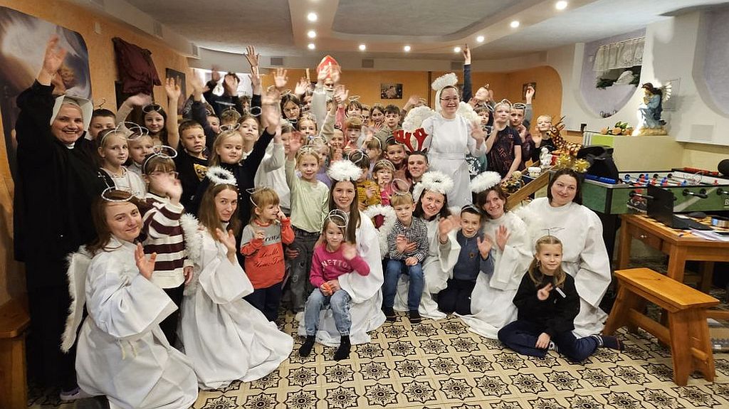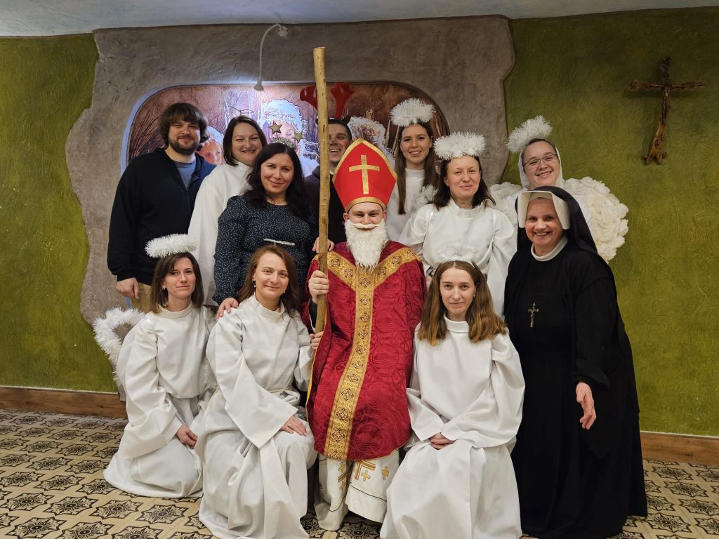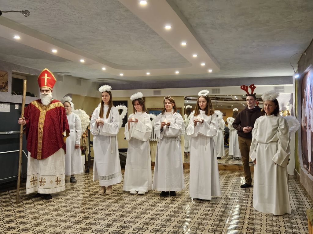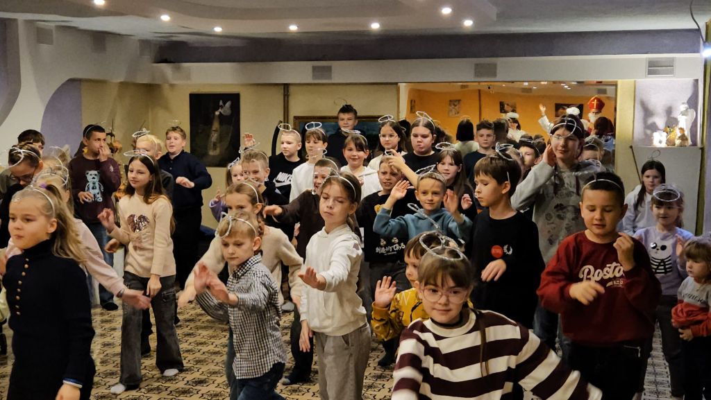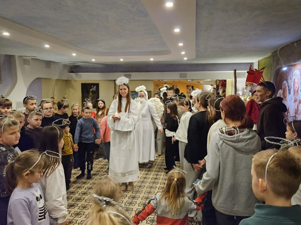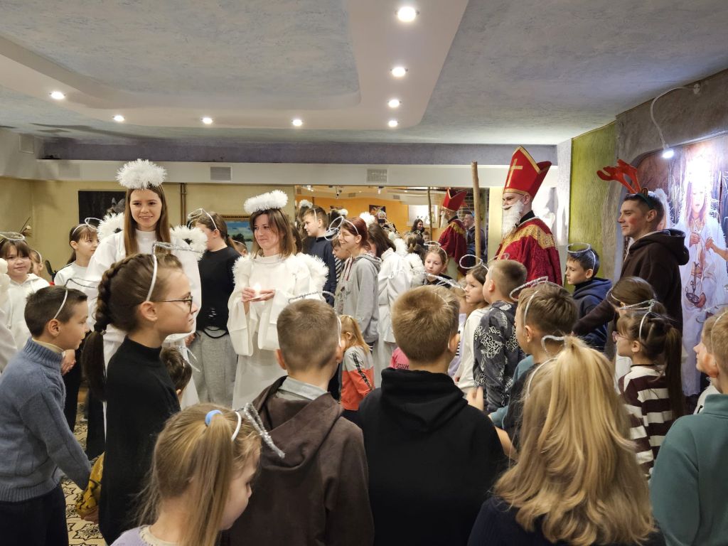 Der heilige Nikolaus im Kinderfreizeitraum in Szydłowicze, Belarus, am 6. Dezember 2025