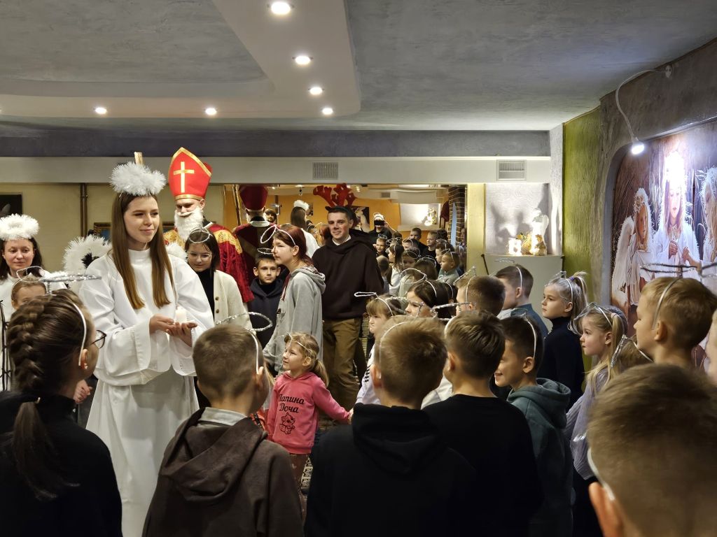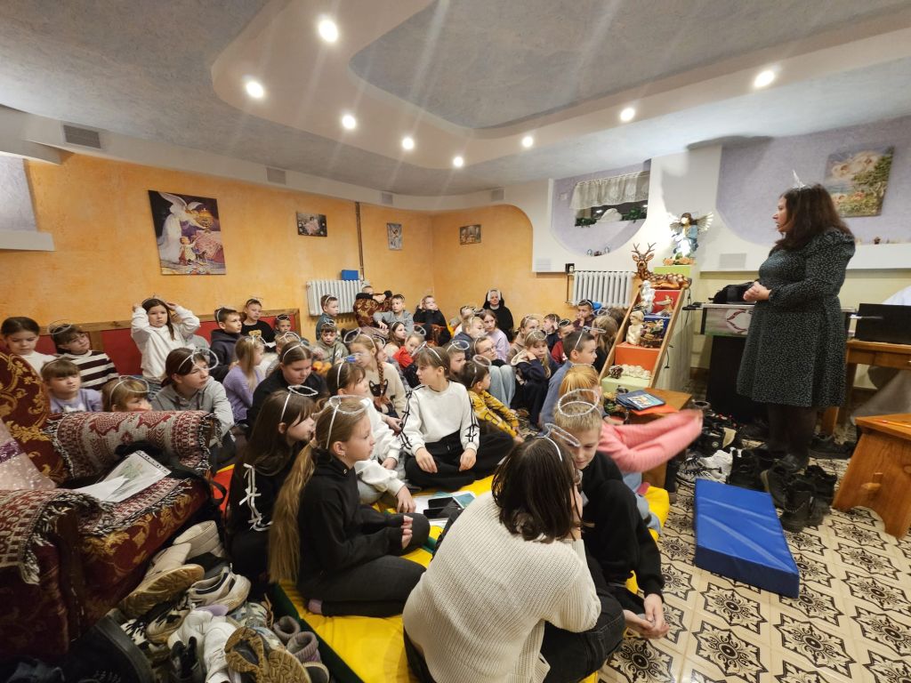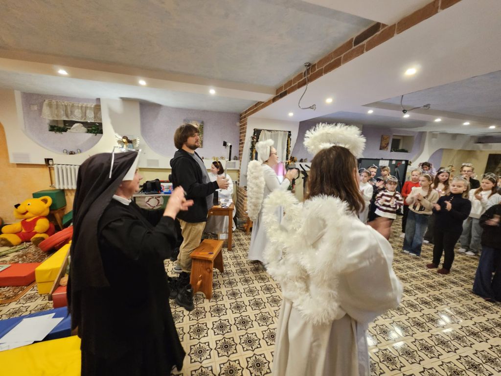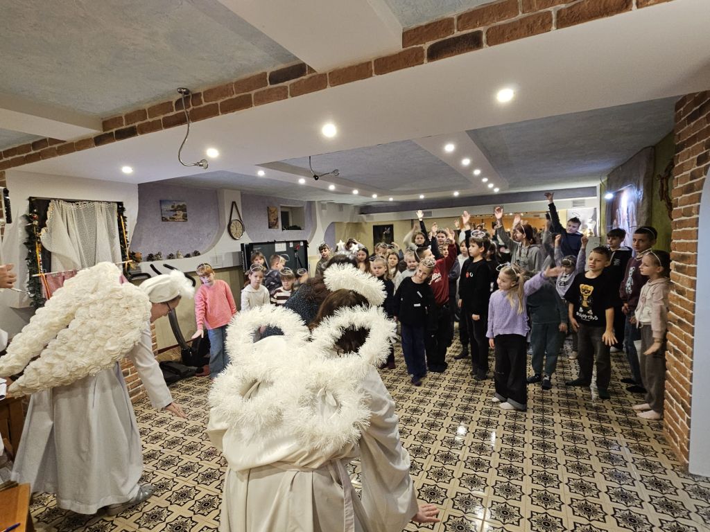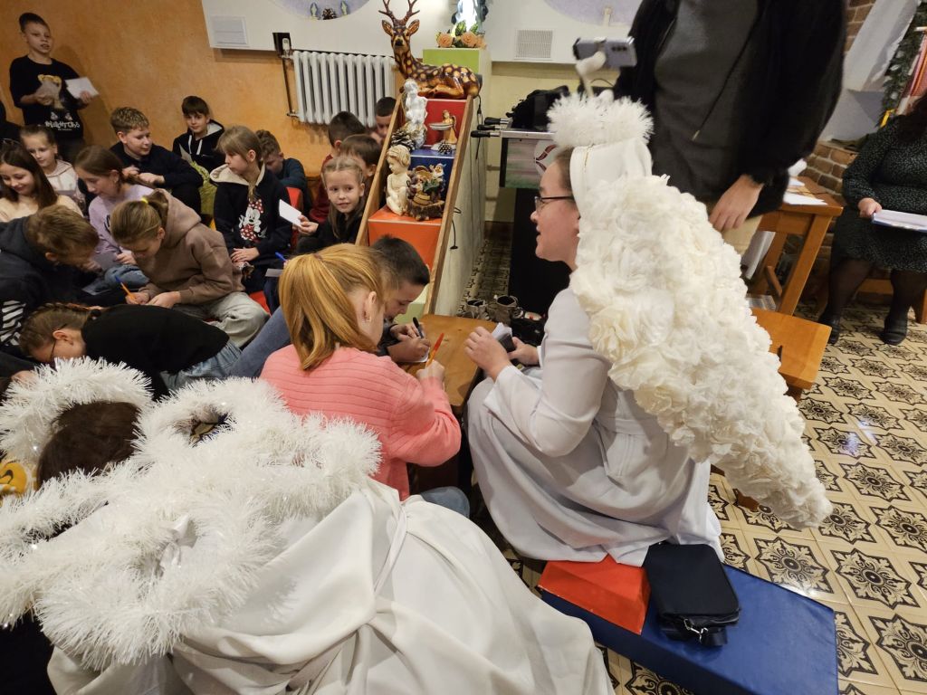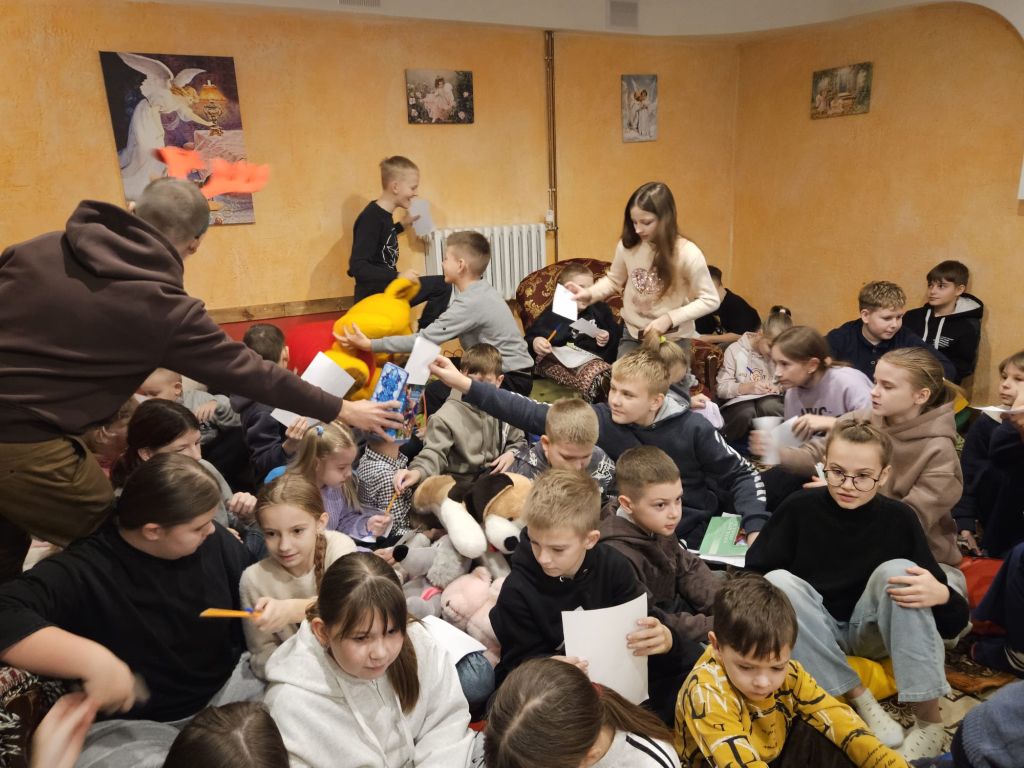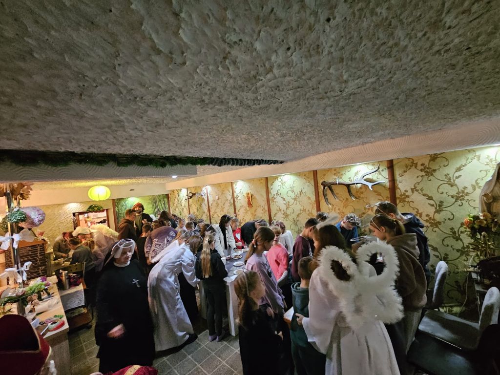 Der heilige Nikolaus im Kinderfreizeitraum in Szydłowicze, Belarus, am 6. Dezember 2025
