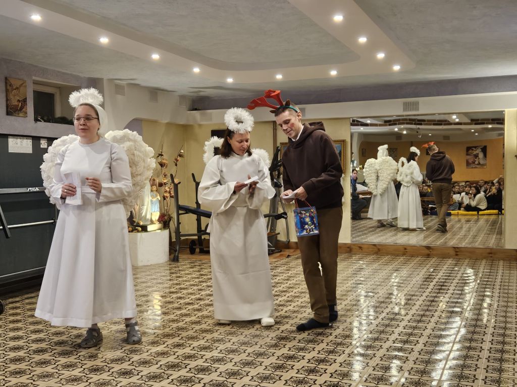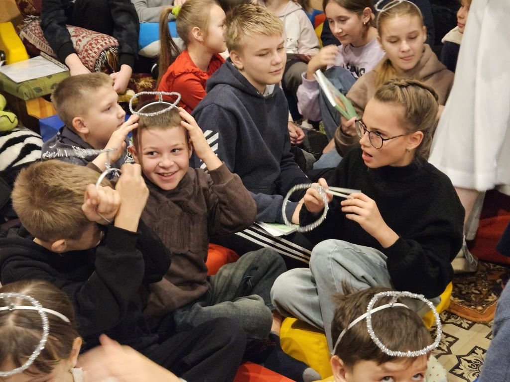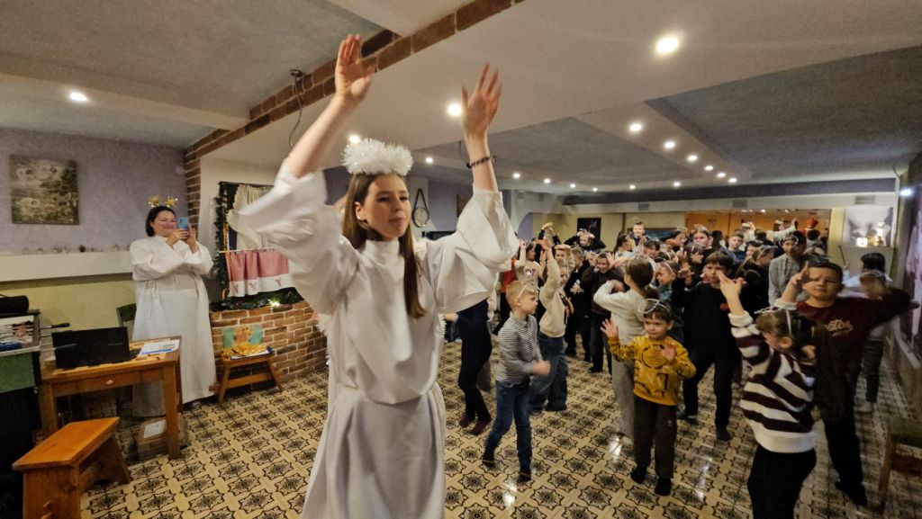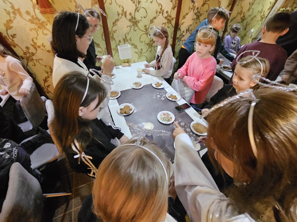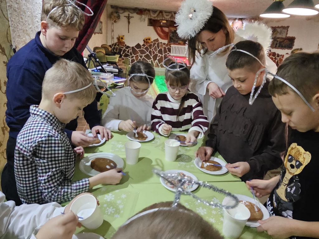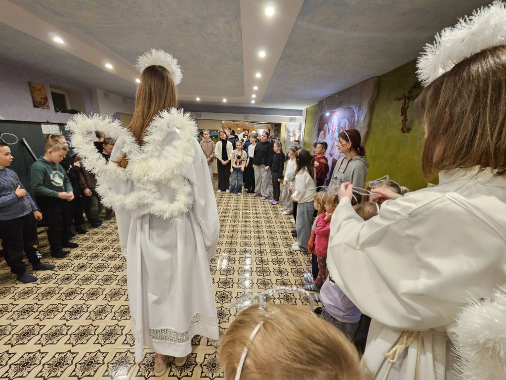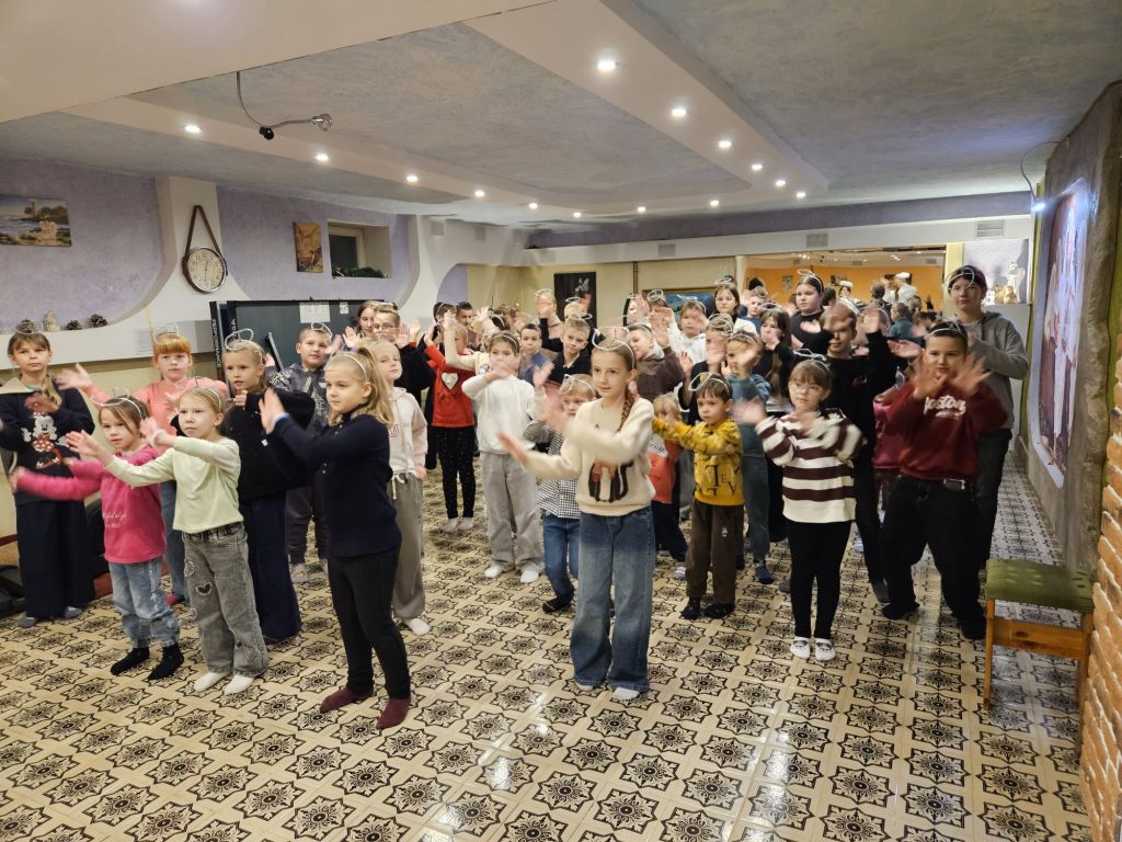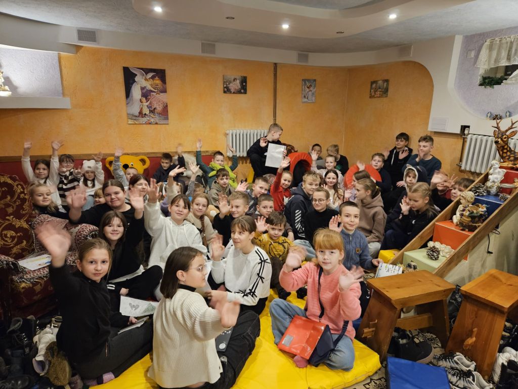 Der heilige Nikolaus im Kinderfreizeitraum in Szydłowicze, Belarus, am 6. Dezember 2025